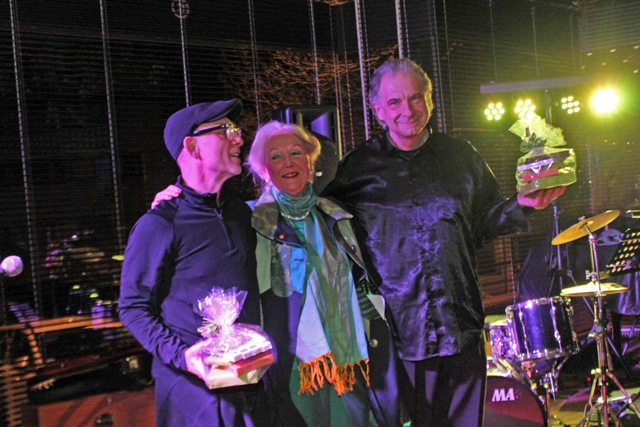 Gut eine Stunde lang unterhielten die zwei musikalischen Profis die Zuhörer im Ratssaal, als dann natürlich auch der Trio-Rio-Hit aus den 80ern – „New York, Rio, Tokyo“ erklang. Das Publikum war begeistert. Eine Überraschungseinlage gab Pantomime Alexander Andreyev, bevor das Konzert mit den Zugaben zu Ende ging. Etwa 150 zufriedene Zuhörer applaudierten herzlich nicht nur den Künstlern, sondern auch der Organisatorin von „Klänge der Stadt“, Ingrid Schaeffer-Rahtgens, die zuvor aus den Händen von Bürgermeister Lutz Urbach für ihr kulturelles Engagement die Goldene Ehrennadel der Stadt erhalten hatte.
